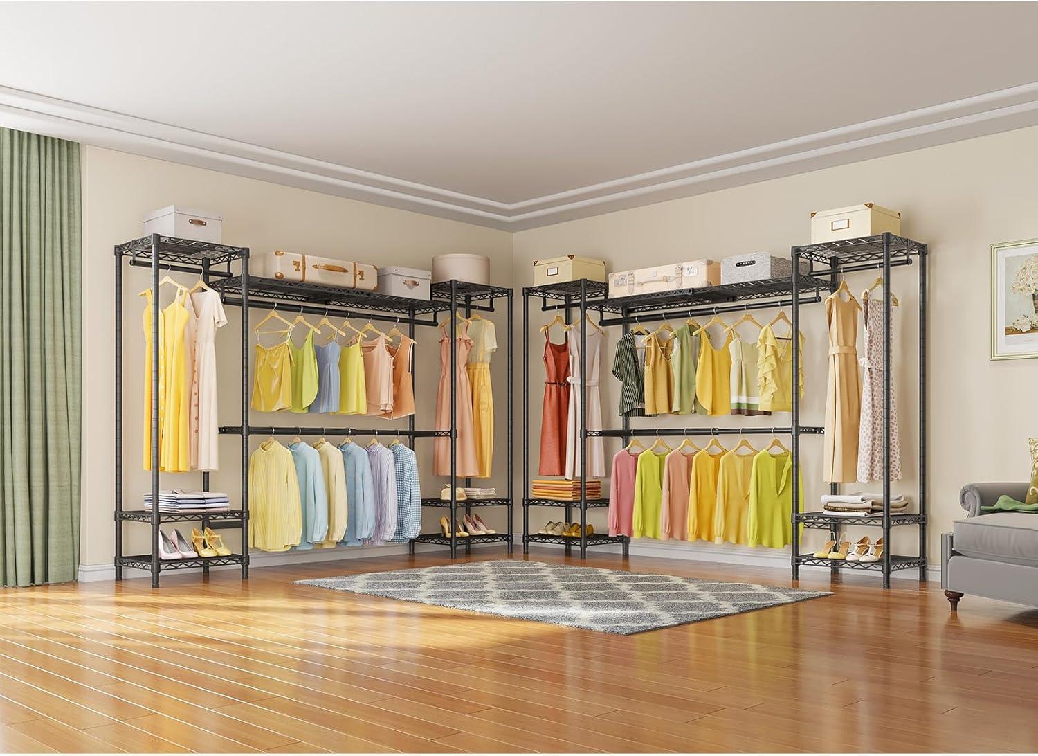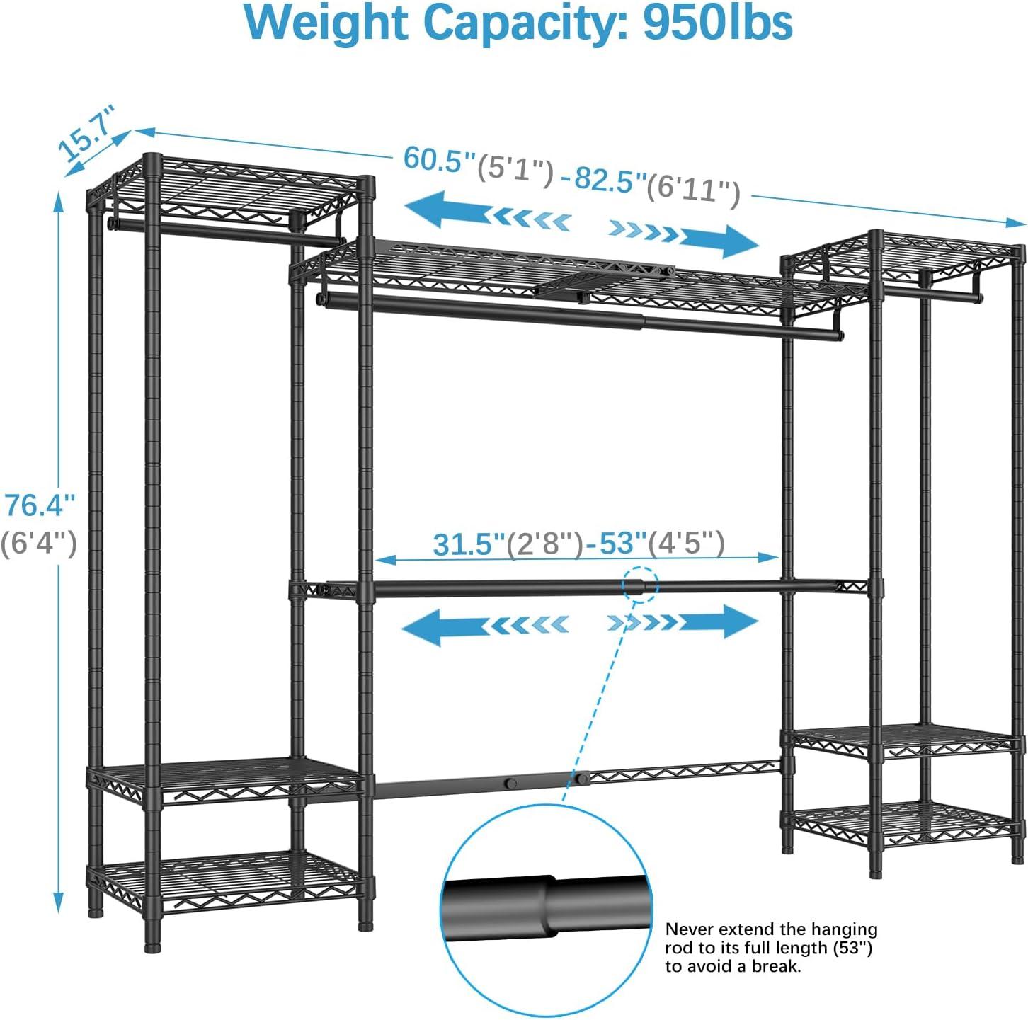 VIPEK X30 Expandable Clothes Rack Adjustable from 5’1″ to 6’11”, 950lbs Capacity Heavy Duty Portable Closet with 4 Hanger Rods & 7 Wire Shelves, Metal Wardrobe System for Reach-in Closet, Black(Black)