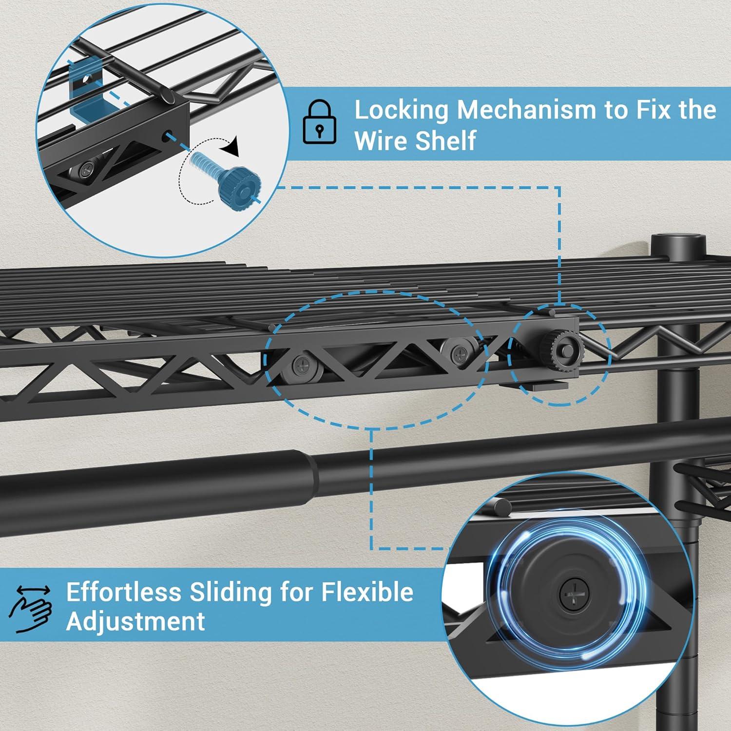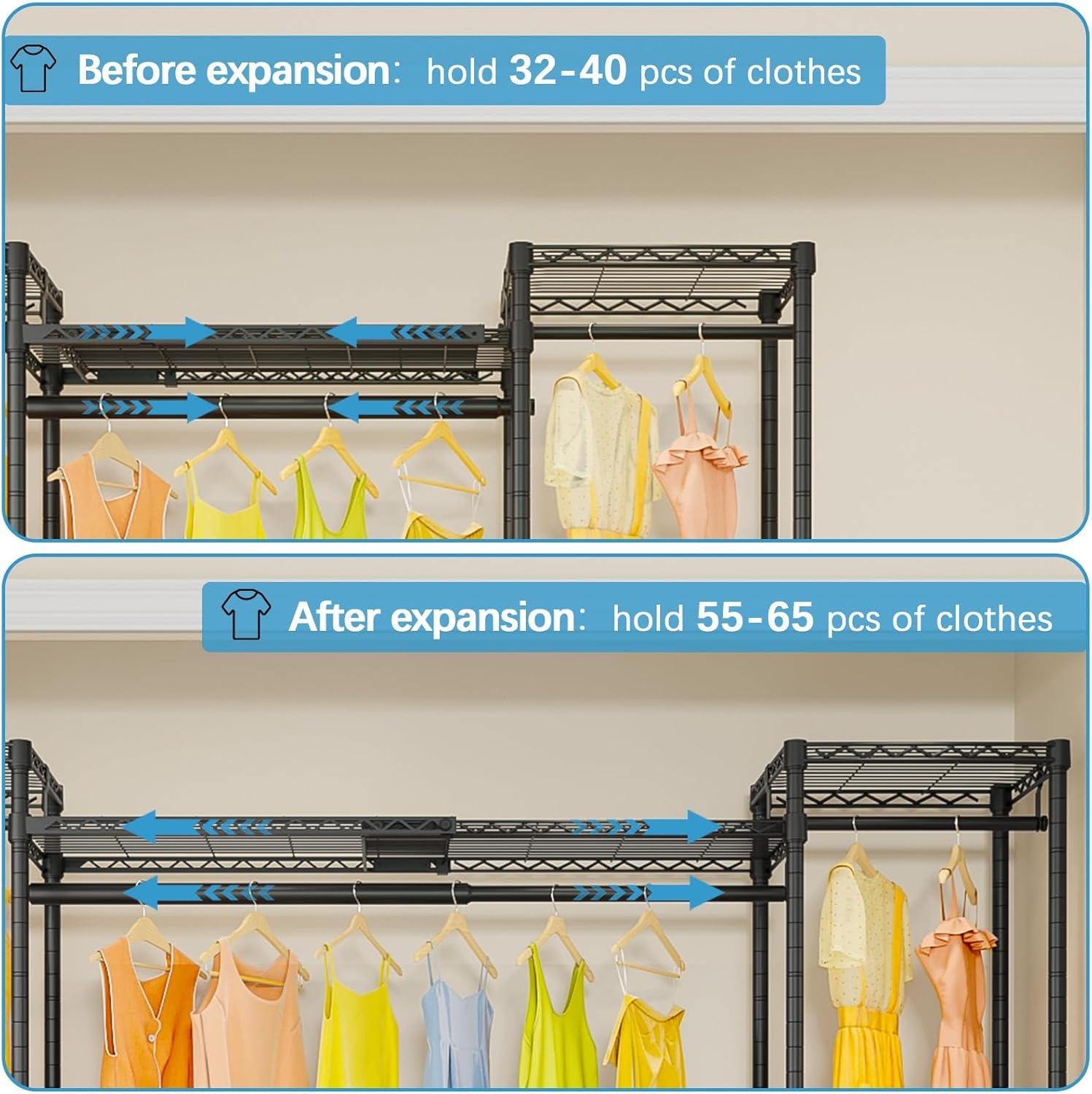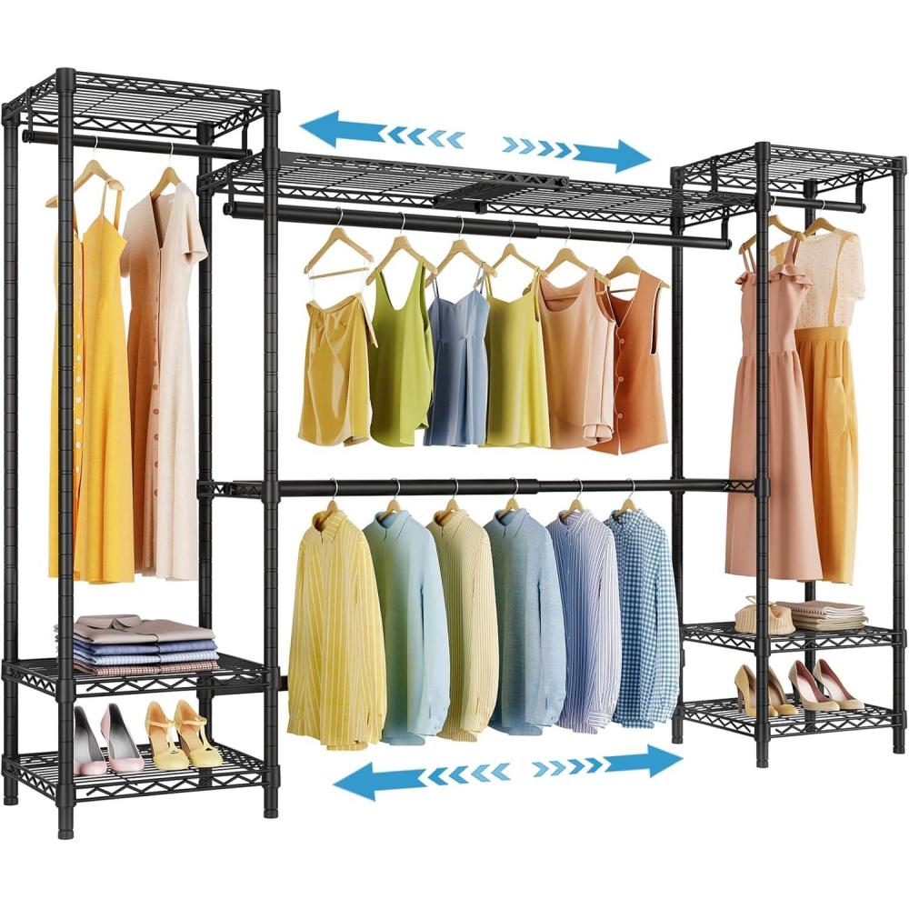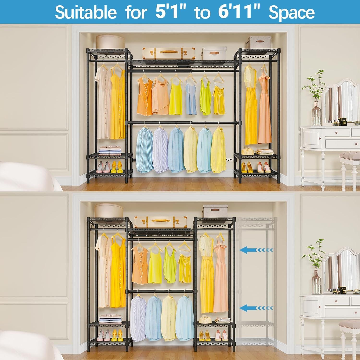 VIPEK X30 Expandable Clothes Rack Adjustable from 5'1" to 6'11", 950lbs Capacity Heavy Duty Portable Closet with 4 Hanger Rods & 7 Wire Shelves, Metal Wardrobe System for Reach-in Closet, Black(Black)